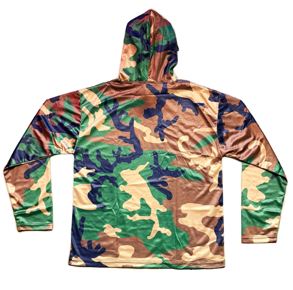 Expertly crafted to keep you comfortable during your outdoor adventures, our OG Camo long sleeve Dri-Fit shirt features our classic woodland camo pattern. Made with moisture wicking fabric, this shirt will keep you dry and cool even on the longest hikes. Its long sleeve design and deep hoodie provide added protection against the elements. Upgrade your outdoor wardrobe today!