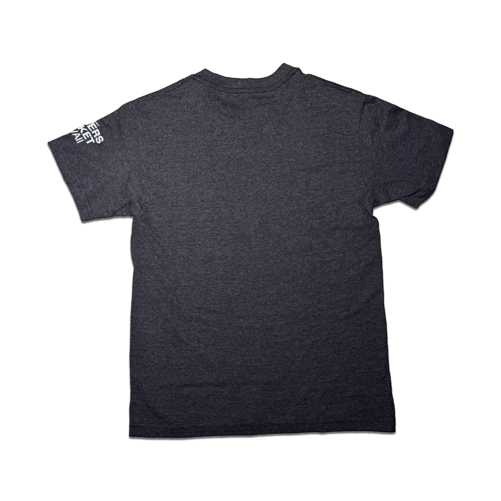 DARK HEATHER GRAY SHIRT WITH LIGHT COOL GRAY PRINT.